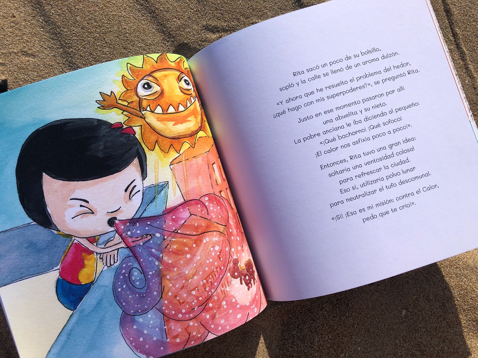 El cuento infantil Rita Superpedorrita, el terror del calor cuenta la historia de aquel verano donde el Calor estaba elevando las temperaturas más que nunca y la vida en la ciudad era insoportable. Pero este supervillano que tanto nos hace sudar no imaginaba que una niña normal se atrevería a hacerle frente. Eso sí, de una manera muy original y divertida.
